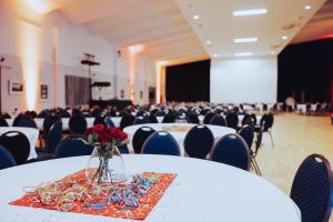 Mit beeindruckenden 670 m² ist Raum 3 der größte Veranstaltungsbereich im Hotel IV Jahreszeiten Zingst und eignet sich perfekt für große Tagungen, Galas, Feiern oder Präsentationen. Die hohe Decke, stilvolle Ausstattung und moderne Technik schaffen ein elegantes und zugleich professionelles Ambiente.