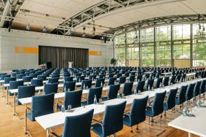 Vierzig lichtdurchflutete, klimatisierte und mit modernster Technik ausgestattete Tagungsräume bieten vielseitige und exklusive Möglichkeiten für Kongresse, Tagungen, Seminare und Workshops nach individuellen Wünschen - hybrid oder analog. Der großzügige Tagungsbereich zeichnet sich durch einen Kongress-Saal für bis zu 500 Personen, einem 860m² angrenzendem Foyer und einer mit KFZ befahrbaren Comfort Lounge (1000m²) inkl. VIP-Empfangsbereich und Parkplatz aus.