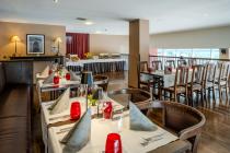 Das Restaurant "Herrngarten" mit internationaler Küche und das Bistro "Moller", in rustikalem Ambiente mit Snacks und regionalen Speisen, sorgen für kulinarischen Genuss. Die großzügige Sonnenterrasse ist eine Idylle im Grünen inmitten der Stadt.