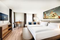 In hervorragender Innenstadtlage, direkt am Karolinenplatz Nr. 4, bietet das WELCOME HOTEL DARMSTADT in direkter Anbindung an das Wissenschafts- und Kongresszentrum "darmstadtium" großzügige Möglichkeiten im Tagungs- und Kongressbereich. Das 4 Sterne Hotel verfügt mit 208 Zimmern in verschiedenen Kategorien über 400 Betten. Alle Zimmer und Suiten sind dank ihrer bodentiefen Fenster hell und freundlich sowie modern eingerichtet. Zusätzlich stehen Klimaanlage, FlatScreen IP TV und kostenloses W- LAN/ LAN in den Zimmern zur Verfügung.